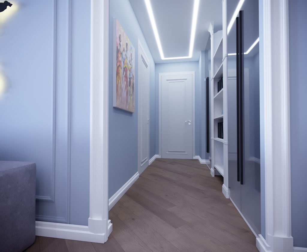 120м². Эклектика в ЖК Триколор. Здесь нашли свое место достаточно смелые решения, такие как совмещения абсолютно разных стилей в одной квартире. Дизайн разработан для молодой пары. Заказчики очень любят путешествовать и привозить сувениры и декор из разных стран мира. Поэтому одной из задач при проектировании интерьера, гармонично вписать уже имеющиеся постеры, маски, книги и статуэтки. Найти место для шкафов и открытых стеллажей, при этом не загромождать интерьер, сохранив общее пространство.